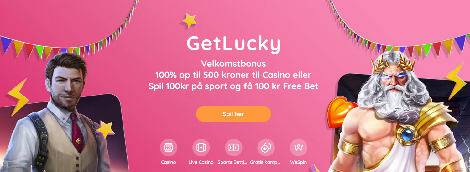Kom i gang med GetLucky Casino velkomstbonussen i dag